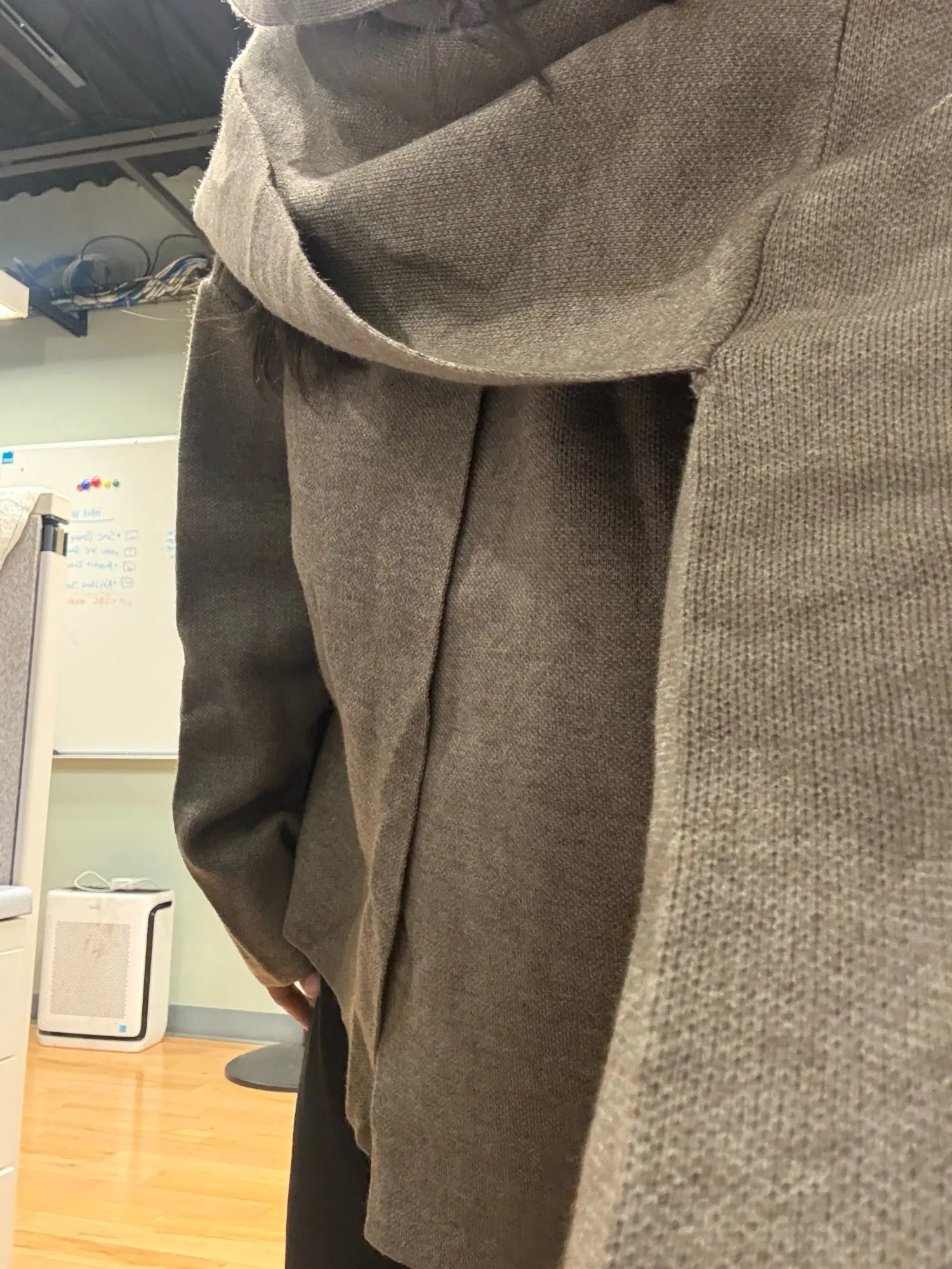 The coat feels very warm and comfortable, and the asymmetric scarf detail looks unique without being too much. It’s easy to style and feels great for everyday winter wear.
