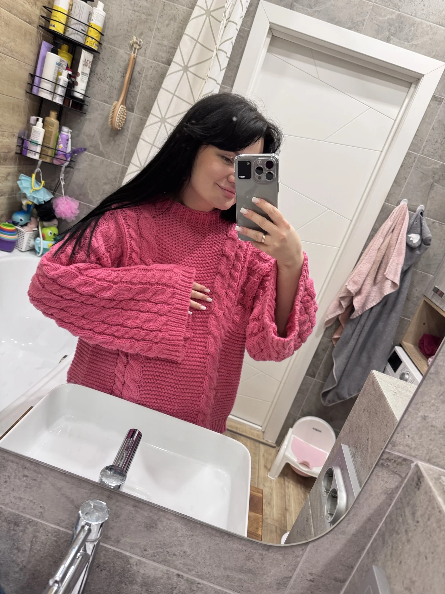 The sweater feels soft and comfortable, and the oversized fit looks great. It’s warm without being too heavy and works perfectly for everyday wear during colder days.